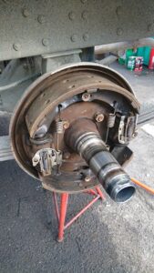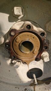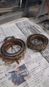 リアハブベアリング清掃・点検・給油作業(三菱 キャンター)