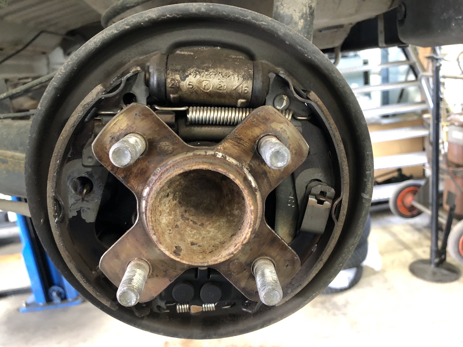 ブレーキを踏むとホイールシリンダーに油圧が掛かりブレーキが効き、